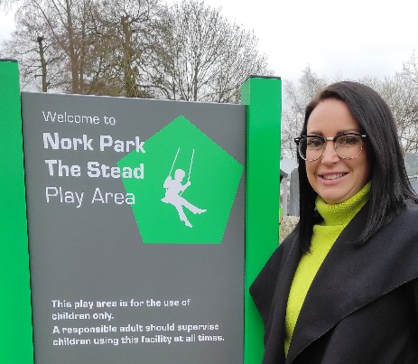 She juggles her work as a Councillor with being a mother of three young children, which is not an easy task. She has been very involved with Nork Park childrens’ playgrounds which, due largely to her hard work, are now in fine condition. Along with her fellow Councillors Peter Harp and George Hinton she has had the outdoor gym, playground and surrounding area named The Stead in honour of long-serving Nork Councillor Brian Stead. The Tattenham Recreation Ground Changing Rooms have been refurbished too and are to be renamed in honour of Councillor Norman Harris.